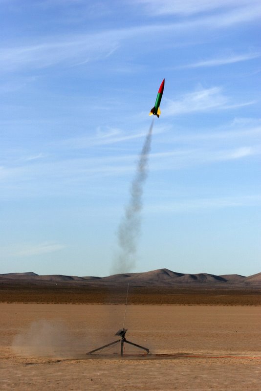 Brief: A low/mid power single staged rocket. Nice and beefy looking. I won this rocket in the 2008 Design this spaceship contest. Mercury Engineering were very generous: not only did they provide a really good kit for EMRR, but they also included a second free parachute, which i think is fantastic service. Construction: The kit comes in a plastic bag, with an art card, ...