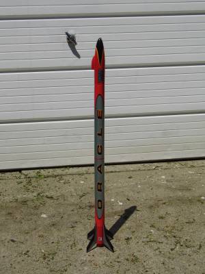 Brief: The Oracle is a large, mostly preassembled model rocked intended for video capture of launches. The rear looking video unit connects via USB port to standard PCs. the resulting 30 video clips can be viewed with Windows Media Player. Construction: THe tail is a Plastic one piece unit with four fins and bayonet motor mount rear retention. Two coupled 12" body tubes ...