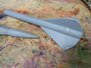 Brief: Minimum diameter, featherweight rocket that can soar well out of sight (1600+ ft according to Estes). Streamer recovery. Very similar to Estes Sizzler & Estes Star Dart. Parts list: Body tube (which doubles as motor mount) Metal motor retention clip Spacer tube Mylar sleeve Paper thrust ring Die-cut balsa fins Launch lug Shock cord Nose cone with ...