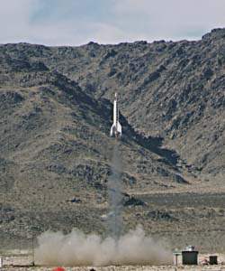 The second flight was at Springfest '99 on March 21st. This launch is put on by L.T.R. at El Dorado dry lake outside Las Vegas. This time, I decided to fly it on a K185, again a low-thrust long-burning motor.