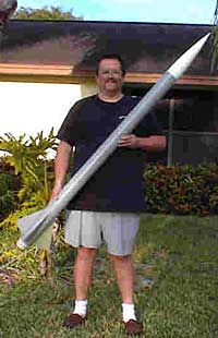 First flight was on an H-123. Using altimeter deployment, drogue at apogee followed by main at 800'. Conditions were very windy. Rocket left the pad nearly vertical but encountered a gust at about 30' veering off at about an 85-degree angle. Nosed over at apogee and fell ballistically for what seemed like forever but in reality, was probably only one or two seconds. The drogue fired followed almost immediately by the main. Rocket recovered in perfect condition.