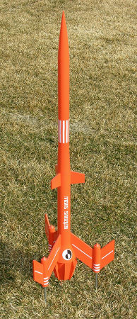 I think that the unopened chute had some sort of dampening effect because during the last couple hundred feet down the rocket had almost no swing. I thought there was a serious chance that I could stick the landing! Alas, no such luck. However, it did land legs-first and gave a nice bounce before falling sideways into the prairie. There are so many parts to break that it would seem almost impossible for such a big ornate rocket to land unblemished, but mine did. The flight and recovery were perfect!