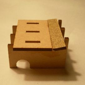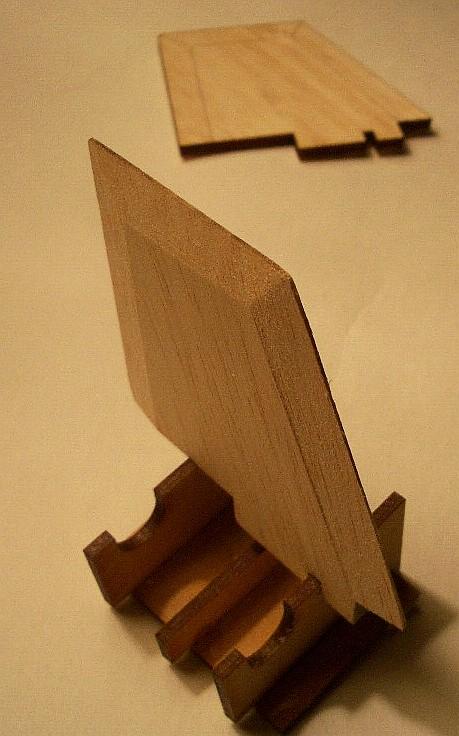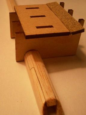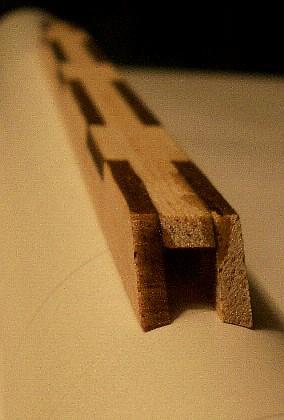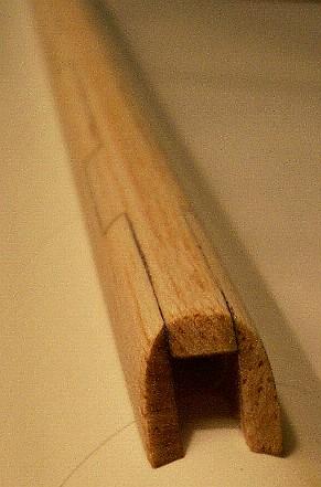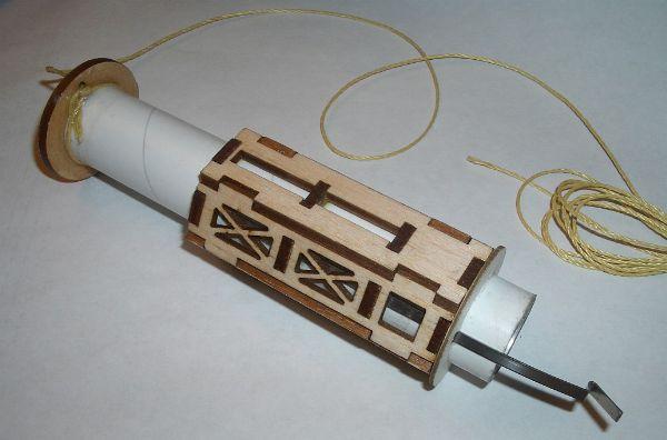 The conduit is built from three pieces of laser-cut balsa that fit together like a jig-saw puzzle. The resulting rectangular conduit then must be shaped into a circular cross-section. The fin-sanding assembly contains a feature that makes it easy to get the correct shape consistently along the length of the conduit. When completed, it is hard to tell that the conduit is actually made from three separate pieces.