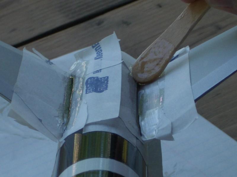 At last I attached the fins to the body using 5-minute epoxy. They fit beautifully into the slots in the jig-saw engine mount.