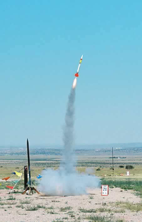 Brief: This is a Quasar Patriot kit with 38mm motor mount instead of 3 x 24mm, through the wall Microlite fins instead of surface mount balsa, lightweight tape-together clamshell electronics bay for dual deployment recovery, shortened nose cone shoulder, and deleted large metal eye bolt for weight savings. Positive motor retention added. Modifications: The Quasar Patriot kit, motor, and most ...