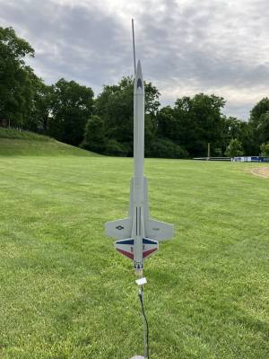 Flight was excellent, arcing out toward center field. At ejection the elastic snapped and the body fell hard. Nose cone recovered nearby.