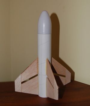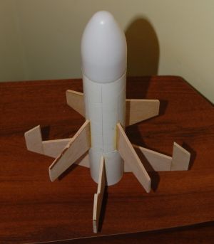 CONs: Not much room for recovery device (as it has to stuff into the nose cone). Really needs a B6 booster for the local field and those aren't readily available (on larger fields it'd be fine with a C6 booster).