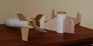 glued the 4 fins on the sustainer tube. (Wood glue and the double glue technique rocks!) Give that a day to dry, and