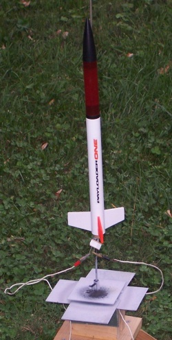 Flight 1: Estes A8-3. Straight up . Nice low flight. Nose up at apogee.