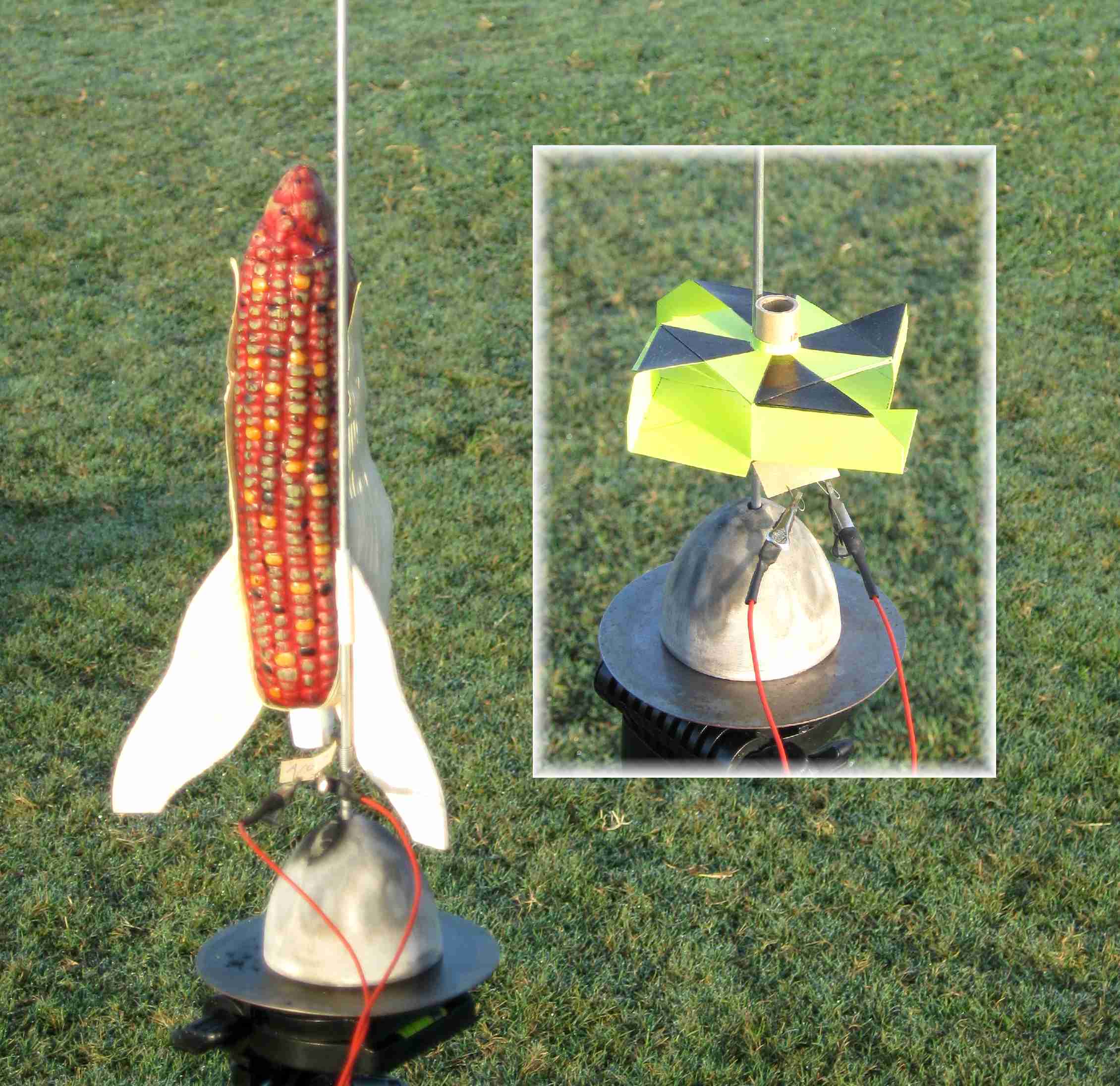 I found this styrofoam corn cob in a sale bin at Hobby Lobby for $1.00. I thought it'd be a great build for the blog. A hole was reamed for a BT-5, 13mm mount. A little nose weight, 8" parachute and unfinished balsa fins round out the build.
