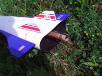 U.S.A. E2X  Flight Nice, straight flight. Forgot to repack the chute after storage, and recovered tail-down undamaged via chutewad. - B6-4 [More]