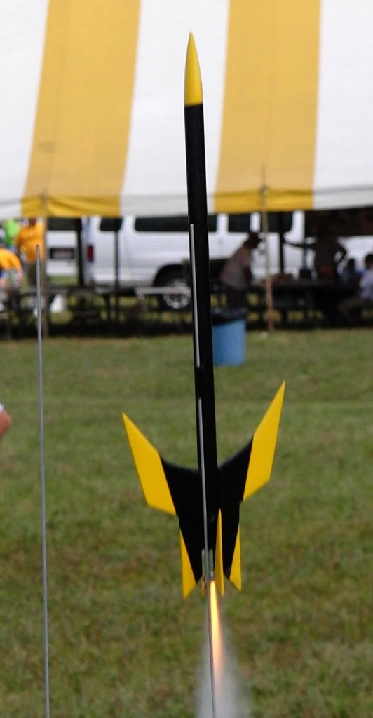 This is a cool little rocket - very light and flew very high on just a B - Chute opened prefect. Rocket landed on a gravel road and broke a fin, but was repaired and flew again.
