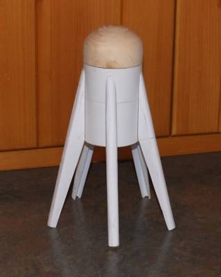 The nose cone I turned on my wood lathe from a piece of pinyon pine from our own property.