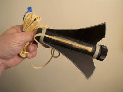 I pre-built the Motor assembly with fins and shock chord attached, extended the fin slots to the aft end and slipped the assembly into place and epoxied.