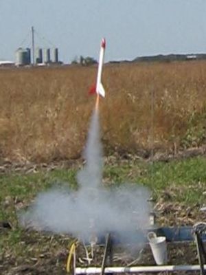 First flight was on an Estes B6-6 with the wind speed at about 5 mph. The flight was perfect with ejection right at