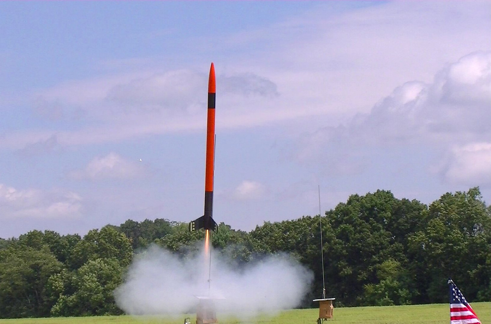( Contributed - by Jim Hinton - 12/08/04) Brief: I changed the booster to a triple 18mm cluster by installing motor mounts into the two side pods along with a conventional wadding type recovery system in each side pod capable of utilizing either streamers or 12" parachutes in each pod. Nose weight added to compensate. Modifications: The biggest trick on this one was determining ...