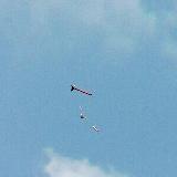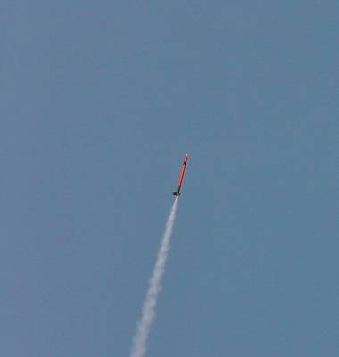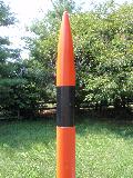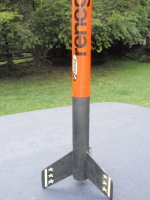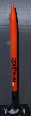 The Renegade: It is a very old model built in the 1970s by my brother. The Renegade is a classic '70s kit. Not at all like the modern Renegade; this is your father's Renegade. This is a large, tall, D-powered model, finished in the original catalog paint scheme. Build credits for this kit actually go to my brother. I modified it by adding my usual altimeter payload bay ("Iris"). This adds 4-1/2 inches to the rocket's length and 17 grams of nose-weight. I also replaced the Estes plastic parachute with a better nylon cloth parachute, and use a Nomex cloth instead of wadding. After an Iris test flight with a D12-5, I’m going to load this baby up with a Aerotech E20-7W engine and push the boundaries of rocket power (for me, anyways). This model reaches about 500' on a D12-5, but on an E20, I would expect at least 1000'. (Iris is named after the Greek god of the rainbow. She is a messenger of the gods, linking the gods with humanity.) This rocket has flown higher than William Penn on top of the Philadelphia City Hall building, NASA's VAB building at Cape Kennedy, or the Cologne Cathedral in Germany.
