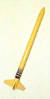Brief: Single Stage sport model rocket with streamer recovery. The parts list: 1 white body tube, 12" by .8" OD 3 laser cut 1/8" balsa fins 1 plastic nose cone, approximately 1 3/4", Parabolic shape 1 cardboard shoulder tube, goes into nose cone. 1 cardboard "thrust ring" 1 motor mount tube 1 Kevlar shock cord (not elastic, approximately 48"), three ply Kevlar cord ...