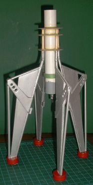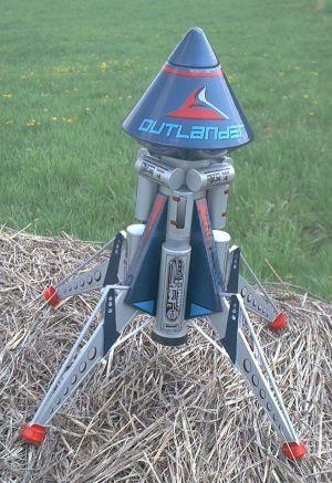 blow-molded ascent module, nose cone and engine nozzle, four legs made of