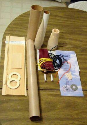 The kit comes with 2 very thick body tubes, a balsa nose cone and transition, laser cut plywood centering rings, basswood for all 16 fins, popular conduits, very nice nylon parachute, nose weight, and sturdy shock cord. The only thing missing would be some kind of positive motor retention.