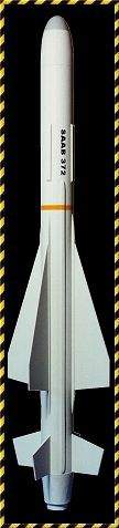 This is a scale model of the swedish air to air missile, the SAAB 372. Like other air to air missiles, it has two sets of four fins with the forward four being larger and forward swept. Yet, the model is flown single staged. It flies on Aerotech 24mm reloadable F24's and Estes D12's and recovers with a bright blue mylar chute.