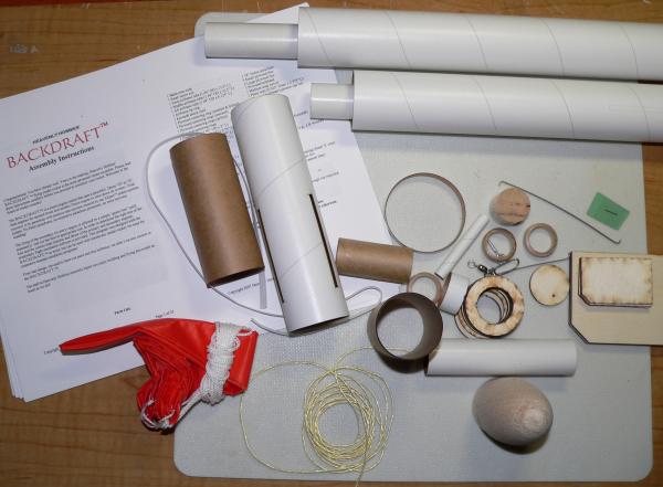 Presented with written permission from RocketyPlanet: Product Review by Dr. John Smolley, MD Wednesday, June 18, 2008 Photo 1: The many, many parts in this kit are of very good to excellent quality Bungee jumping for the fainthearted? The new Backdraft, a BT-60 based three-foot rocket from Heavenly Hobbies, appears ordinary enough ...