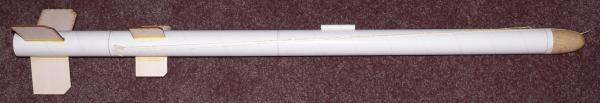The tether is then run down the length of the body tube and loosely taped to the side of the rocket.
