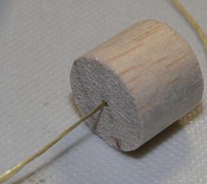 The parachute compartment has a Heavenly Hobbies' EZJect™ balsa ejection piston. This is used to protect and push the parachute out of the compartment. What I found interesting here is that you are supposed to push a flimsy/soft piece of Kevlar through a 1" balsa piston with a little bitty hole!