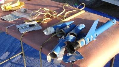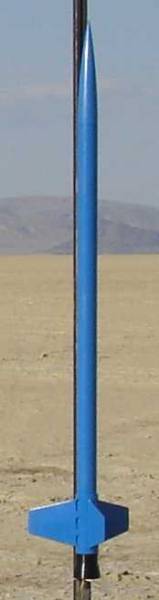 Sanding and painting was as one would expect, with a few sentences of suggestions in the instructions.  After initial sanding I used a Rustoleum gray paint+primer, followed by more sanding and a Rustoleum blue for the entire rocket.  The spacers for the rail guides feel a bit hack-ish (they're just pieces of a larger diameter coupler I believe, so the inside curve matches the outer curve of the tube), but I think necessary due to the extra diameter of the bell-shaped retainer to get the extra rail clearance.  It's too bad there isn't just a taller version of the aluminum rail guides to get the extra clearance.  It leaves a few more 'warts' on the rocket and is obviously more to paint and epoxy (I decided to paint the tube and the spacers first, then sand them down and apply the epoxy to avoid having to mask-off the aluminum bits).  I've also found the local launch groups (AeroPac, TCC, LUNAR) aren't that thrilled about the aluminum guides, they'd prefer plastic rail buttons, less chance of binding and damaging the rail.  But it's a minimum diameter rocket, so it seems like it would have to be something that purely glues to the outside, not bolting through to the inside where it could interfere with the motor or parachute.  AeroPac suggested applying some silicon lubricant before launching, so I bought some and have sprayed the guides before each launch since.  The guides do have a groove down the middle that can help with alignment (to run a string or yardstick through between the two guides), so it's possible to attach them very straight I believe and reduce the risk of binding.