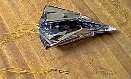 The chute itself is silver Mylar cut in an octagonal pattern. The lines are 12" long thin Kevlar®. On one end they are tied to holes in the chute, which are reinforced with circular tabs front and back. The chute also comes with a snap swivel.