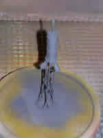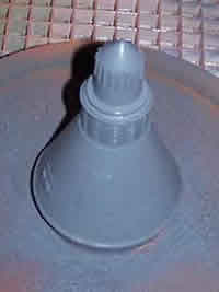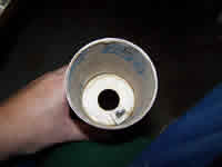 A 3/32" hole was drilled in the center of both end caps of the can. The spike was then slid through the top hole and into the bottom hole so that the tubing was flush with the bottom cap. The styrene was then solvent welded into place.
