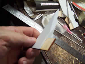 When all of the angles were formed, the styrene was glued to the plywood cores using CA. The resulting bevel actually looked pretty good even if it was not yet "perfect".