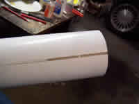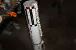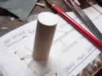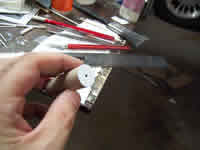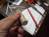 The next step is what really caused me some confusion. Both the photos in the instruction and the plans show two pieces of styrene with a half circular profile running vertically on the can, 180 degrees from each other. The text of the instructions makes no mention of them, however. At first I thought this would be fairly simple to take care of. I laid the stock material against the plan and cut two pieces to lengths. Then, because of the plan and the photos, I used sandpaper to put a rounded point at the ends of both of them.