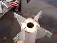 The other centering ring, the one with the bolt, was mounted in the body tube six inches from the forward end. It too was mounted and filleted with five-minute epoxy and it was ensured that the ring of the bolt was facing forward.