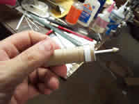 The "can" at the top of the LES is also built up. The kit comes with a short length of tubing and this was glued to scraps of flat styrene plastic and allowed to set. When it was set up, excess plastic was trimmed away and then sandpaper was used to round the caps even with the edge of the tubing.