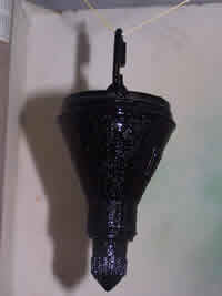 The resin capsule needed my attention since it had been languishing. The instructions called for it to be rinsed in a 50-50 solution of bleach and water to get rid of mold release agents. I just used straight clorox and then rinsed it. After it was dried, I set it up in the booth and applied Testor's gray primer. It was about this time I realized that I had forgotten to install the eyescrew so a hole was drilled in the bottom, a bit of epoxy put in place and the screw was tightened into place.