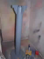 The body of the rocket itself was given a gentle sanding with #400 paper and then brushed off. It was then placed in the booth and primed with Testor's gray.