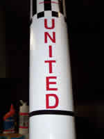 Next up was the large lettering for "United" on both sides of the rocket. To my horror, I realized that these were individual letters and not a single sticker and I just KNEW that I would never get the lettering lined up right. I began to transfer tick marks onto the BT with a pencil, knowing I would have to go back and paint or erase them out. I was pretty bummed at this point as I began to peel the front paper off of the letters and had a revelation. The front paper was there for a reason.