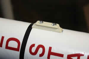 The project sat around without any work for a long time because I had ordered a custom chute for it and because I lost the capsule decals. When the chute came in, I decided to make a rush effort to get it ready for a club launch. I had not put on the launch lugs earlier because I wanted to use a linear rail lug. The lug was placed and the screw holes were marked and drilled. A thin layer of epoxy was then put on the bottom of the lug and in the holes and the lug replaced and the screws tightened.