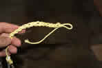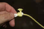 The basis of my shock mount was a length of the extra heavy Kevlar tied to the internal eyebolt. To this was tied a length of heavy braided nylon rope using a double sheet bend. Since I wanted to fly with the LES attached and I worried about it shearing under stress, I decided to try an idea I had read about and chain stitched both the Kevlar and the nylon in an attempt to gentle the deployment a bit. A loop was also tied into the nylon about 2/3 of the way to the capsule to attach the chute harness. One of the things I wanted to avoid during recovery is the LES hitting the ground first. In an attempt to avoid this, I fashioned a harness of nylon fishing line to run back from the tower to the braided nylon so that the capsule would recover horizontally. With that, I thought my Redstone was done and that it would soon take to the air.