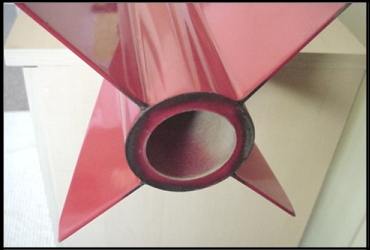 I generously coated the inside fillets and did three applications of epoxy on all the fin/motor/body tube joints. The 3.1 inch diameter body tube does not give you much leeway to apply the epoxy in there so I made a funnel out of waxed paper and poured epoxy through it to coat all the joints inside the tube, doing two joints at a time. Of course, make sure you readily clean up any drips or smears of epoxy from the precious fin slots and motor tube. I use Bounty paper towels which soak up even the thickest mixtures. If you miss any epoxy drips or sags, they will surely be a son-of-a-gun to smooth out when cured! At this point, I will refrain from mentioning the manufacturer's name that made the epoxy adhesive I used for the fin fillets during the construction, but if you get nothing else out of this review, please head this warning: Use ONLY good quality adhesives made by a name you can trust! The particular so-called 'wonder epoxy' that I used for the fillets did not chemically react the way it should have. It stayed very sticky and soft and would not set up. Thankfully I had used the other epoxy to adhere the motor mount into the airframe and the trouble started with the bargain glue here, on the fin fillets. Now I like my fillets to look very smooth and even, which stems from my days as an auto painter. It ended up I had to take a rounded butter knife and dig the soft, un-cured epoxy out of the fin/body fillet points. I cursed the manufacturer of the product at least a dozen times while just basically making a mess of everything. Now, what was supposed to be a beautiful fillet job ended up looking like the surface of the moon!