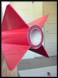 The kit boasts a single stage, 54mm motor mount around the reliable LOC airframe and 4 almost completely triangle-shaped fins that sweep a bit forward along the aft edge of 10 inches across. The finished vehicle weighs in at just over 2.5 pounds, making it a great kit for anyone looking to acquire their level 1 cert. or a great all-around sport flyer!