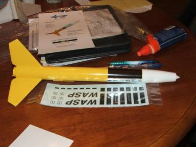 Brief: This is a clone of the Estes WASP #1930, which was available from 1984 to 1985. It is a single stage, low power, streamer recovery, three fins and nose cone design. Construction: The parts consist of one BT-55 body tube 11 15/16" long, one BT-50 motor mount tube 2.75" long, two AR-5055 motor mount centering rings, one motor mount block, three laser cut balsa ...