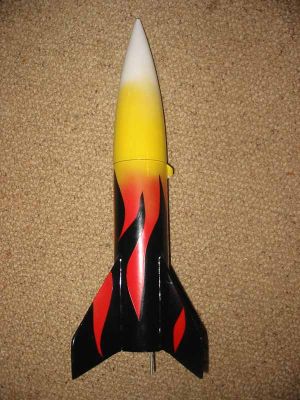 Short, stubby, and fun rocket. Flies on Estes D engines. Unfortunately I think it was just discontinued because it was not in Estes' 2005 Catalog. The rocket made its debut in the mid 1990s. At the time, kits were being made with a 4/6 sided box with a bag. This one was no exception. It had: 1 Nose Cone 1 Fat body tube 1 24mm Motor tube 1 Sheet of balsa 2 Centering rings ...