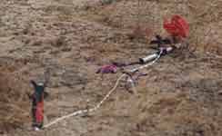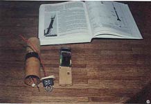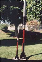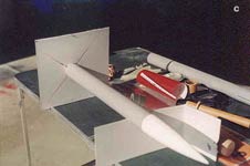 ejection as a backup. The BBX ripped off the rail and climbed on a pillar of smoke and fire absolutely straight up. Arced over at the top and the FCP-M1 did its job at apogee. The drogue came out and she started down. At 400 ft. the FCP-M1 did its job again and the nose popped off. Unfortunately, I hadn't used enough BP! The main stayed in the tube. |