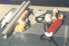 course, they did. I decided to prepare all plastic and fiberglass surfaces before starting to epoxy any parts. I started by sanding all the G10 fins, rounding the edges and roughing up the areas to be glued. I gave the Quantum Tubes and nose cone a bath in soapy water to remove any oily residue (Make sure you rinse well too!). |