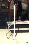 | I then used the jig to hold the fins in place while I epoxied. them. After the epoxy set up on the Main fins, I removed the tail cone and applied generous filets on the motor tube joint and the inside airframe joint. I then added filets to the exterior of the fin/airframe joint but that is mostly cosmetic as most of the strength of the joint is on the inside. | ![]() |