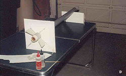 I used a piece of card board to make a fin jig. On the Mini BBX, this is a very important step because the "Canard" fins up front must be aligned perfectly and they are not "though the wall" mounted. They just fit into fit into shallow grooves in the tube. Without the fin jig, they could very easily lay over when the epoxy is setting up. |