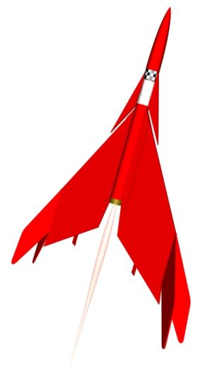 The kit inlcudes 1 body tube with a clear payload section and a balsa nosecone. This is a glider with broad swept wings. There is an elastic cord that pulls the elevons up but you also have a stiff string that is anchored in between the motor mount and motor with a pin. When the motor ejects, the pin is released and the elastic pulls the elevons into position. The elevon position is set by two metal pins that are glued to the wing and are bent into position.
