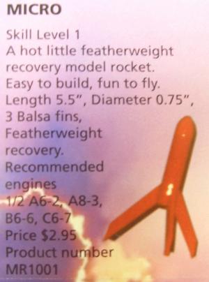 This is a small little rocket that uses featherweight recovery. It is a fun little afternoon or class project. It is hard to recover since it's so small.
